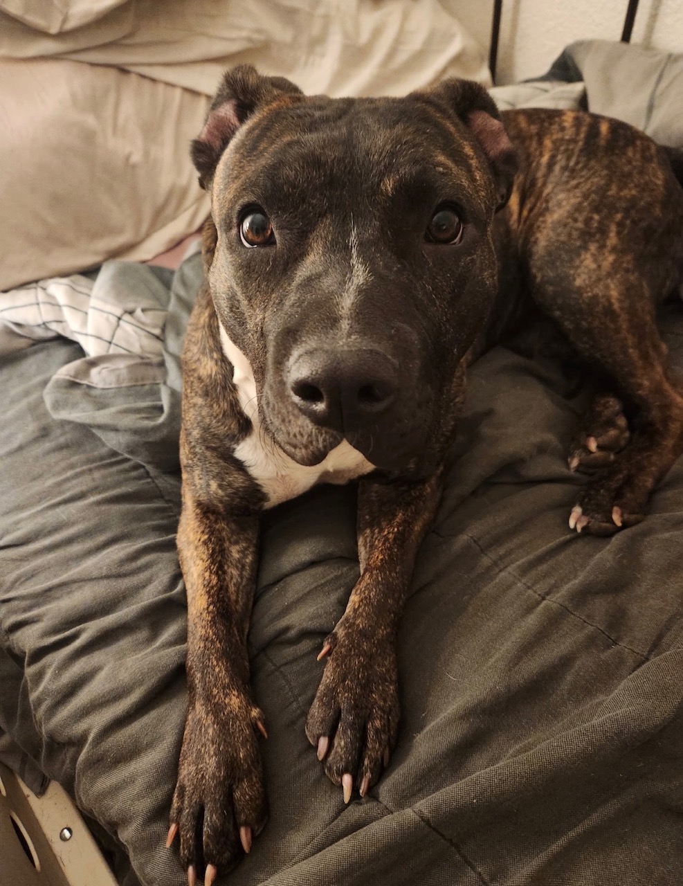 “I have a dog; his name is Sly. I love him, and he’s very special to me. He also has special needs.’ He’s an abused pit bull I’ve had since he was around a year old. He’s now approaching his 13th birthday and still has flashbacks and trust issues. I had tried him with CBD oils before, but he knows what he likes, and what he doesn’t like–and he didn’t like CBD oil.